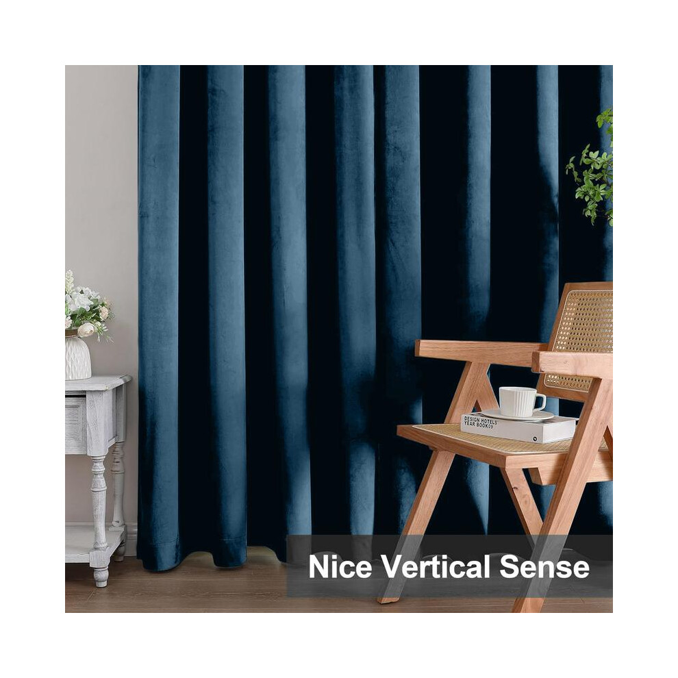 (Navy, 90"x90") Moonlight Bedding Crushed Velvet Blackout Curtains Thermal Insulated Pair OF Ready Made Curtain Panel + 2 Tie