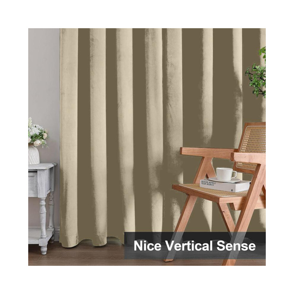 (Beige, 90"x90") Moonlight Bedding Crushed Velvet Blackout Curtains Thermal Insulated Pair OF Ready Made Curtain Panel + 2 Tie