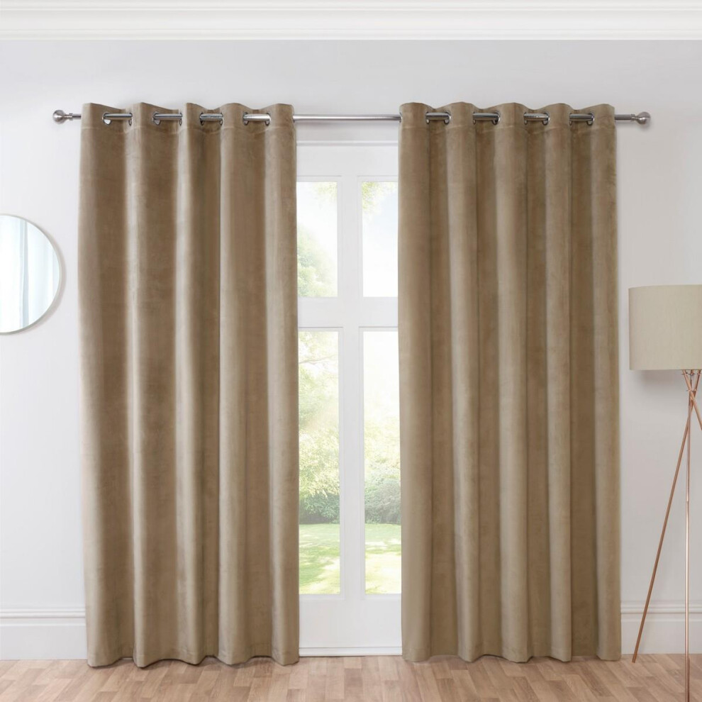 Boulevard Oyster Beige Ready Made Eyelet Curtains 90x90" Velvet Modern