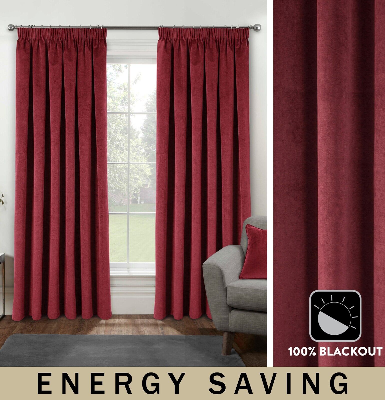 Red Velvet 100% Blackout Pair of Curtains Tape Top - 90 x 90 inch (229x229cm)