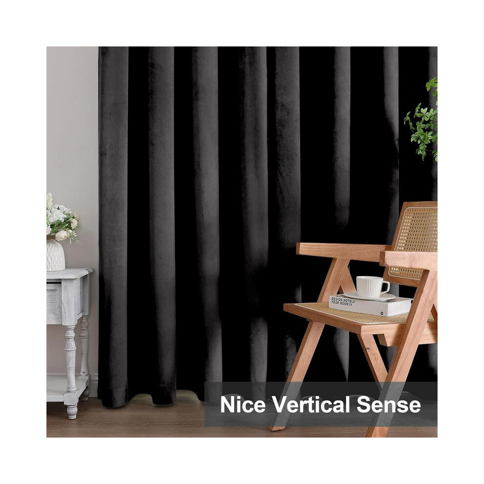 (Black, 90"x90") Heavy Velvet Curtains Eyelet Ring