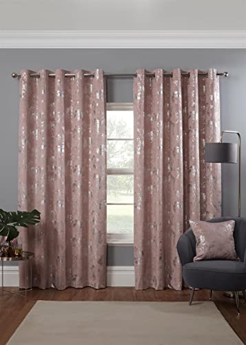 Osaka Japanese Eyelet Curtains 90 x 90 Blush Lined Metallic Velvet Trees