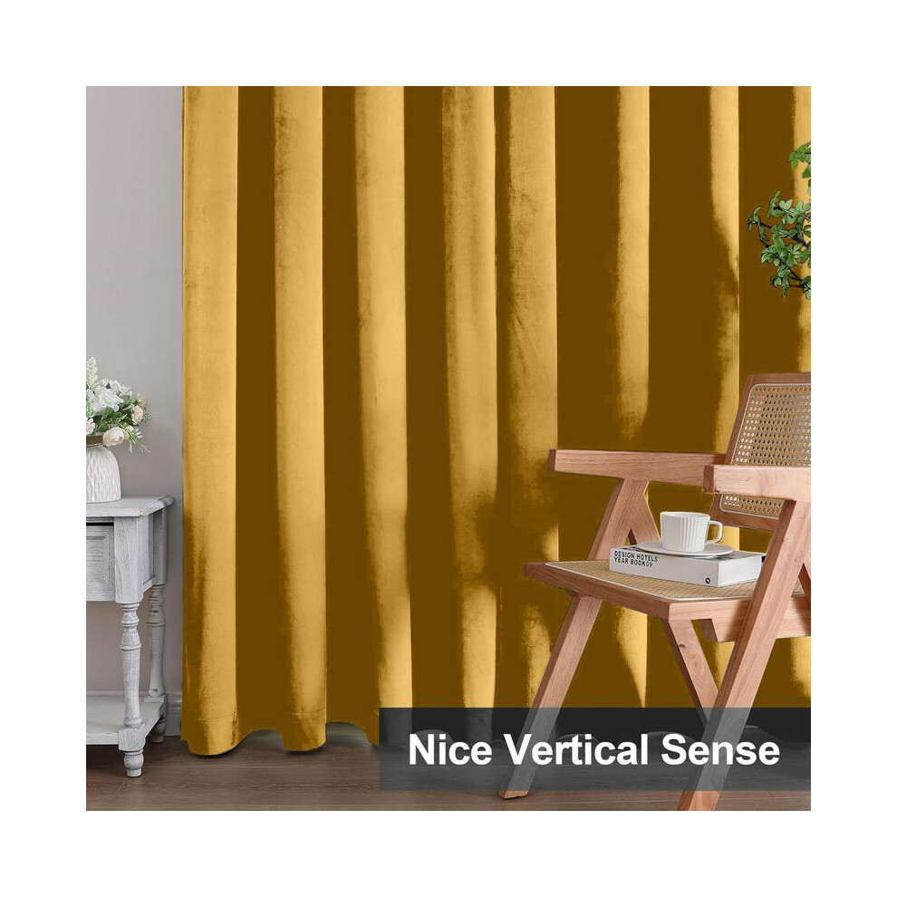 (Ochre, 90"x90") Moonlight Bedding Crushed Velvet Blackout Curtains Thermal Insulated Pair OF Ready Made Curtain Panel + 2 Tie Backs for Bedroom Livi