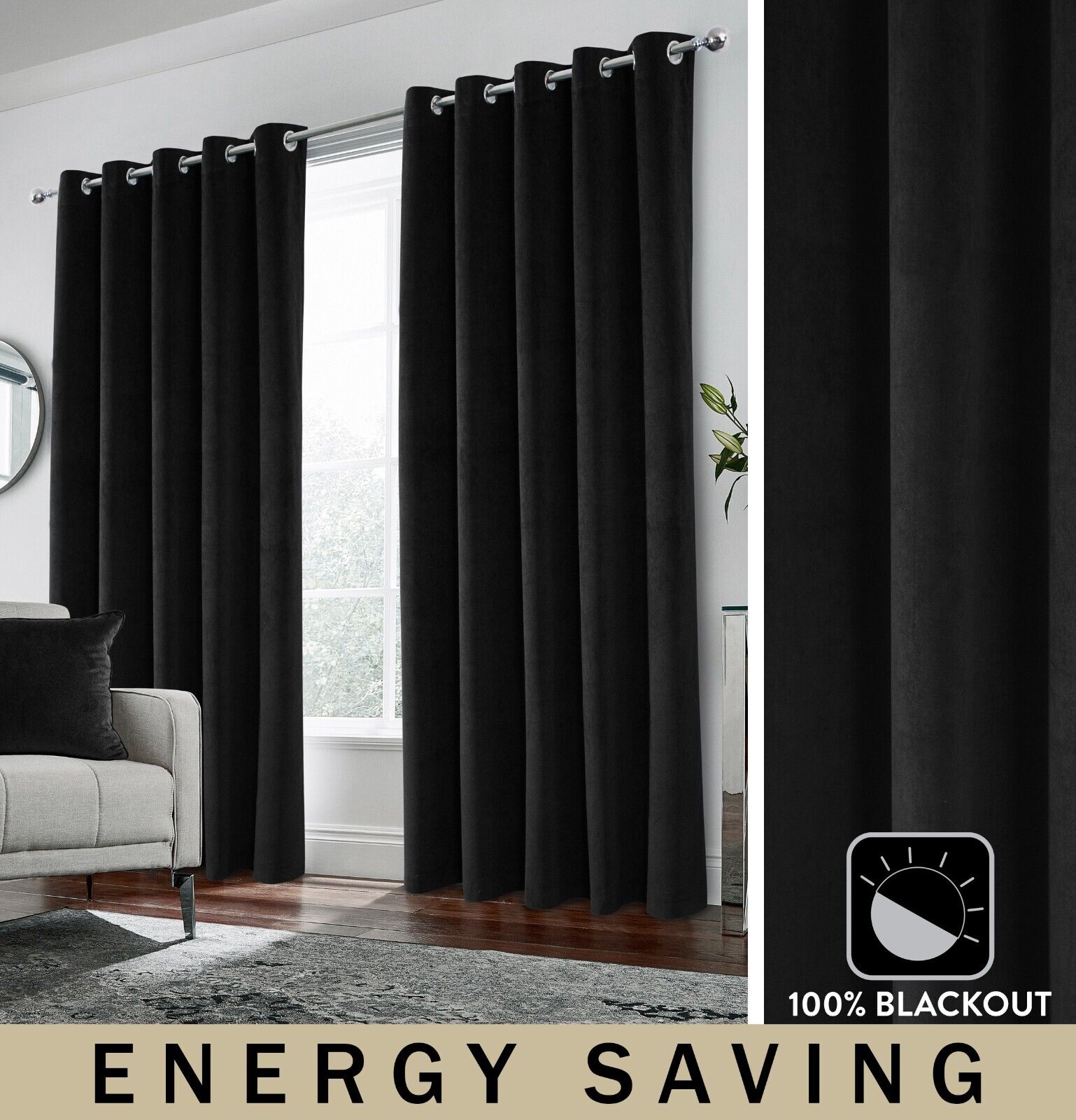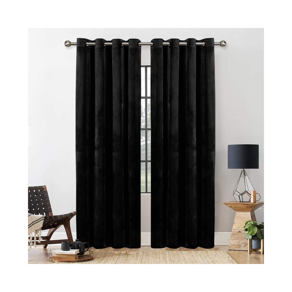 Catherine Lansfield Wilson Velvet Blackout Thermal 90x90 Inch Eyelet Curtains Two Panels Black