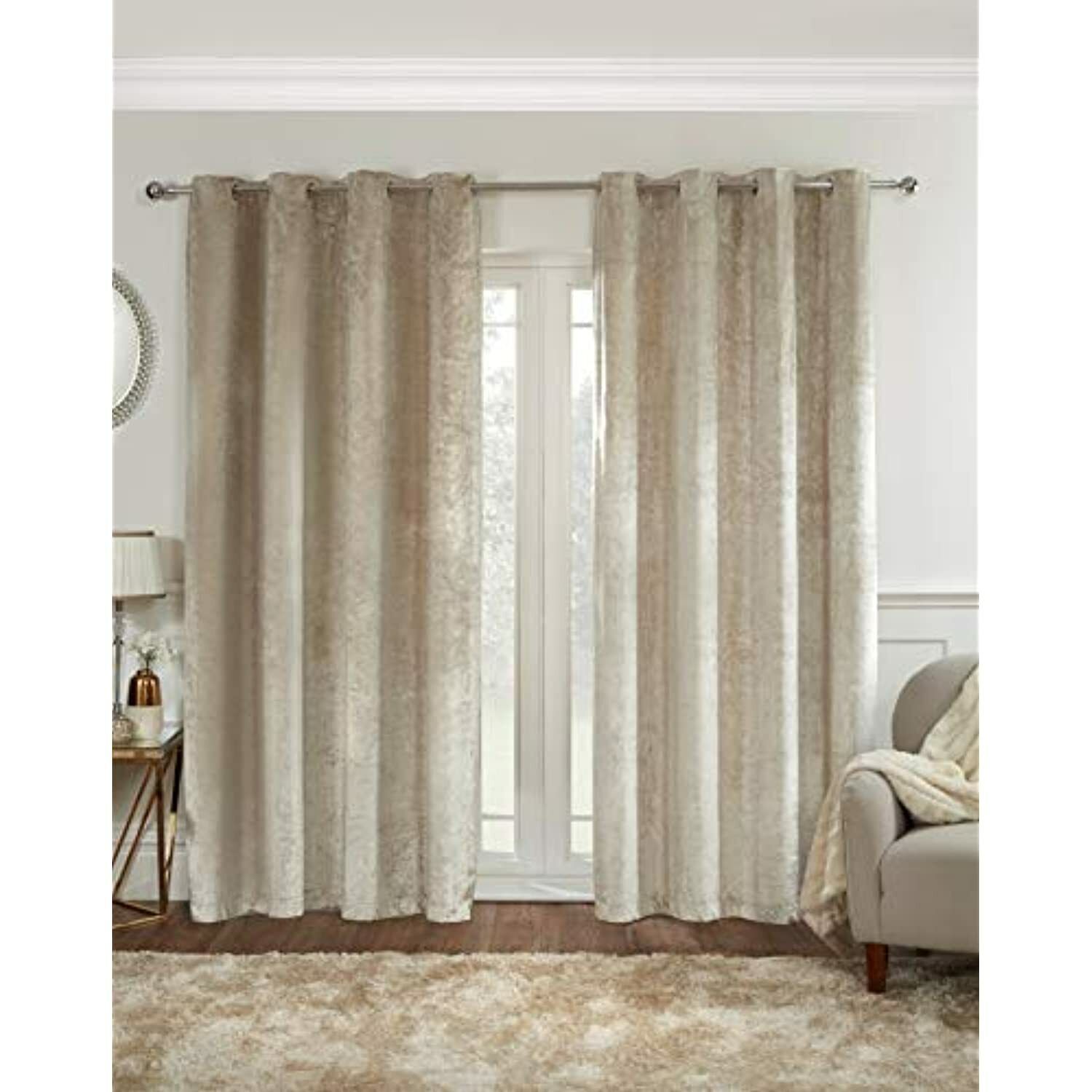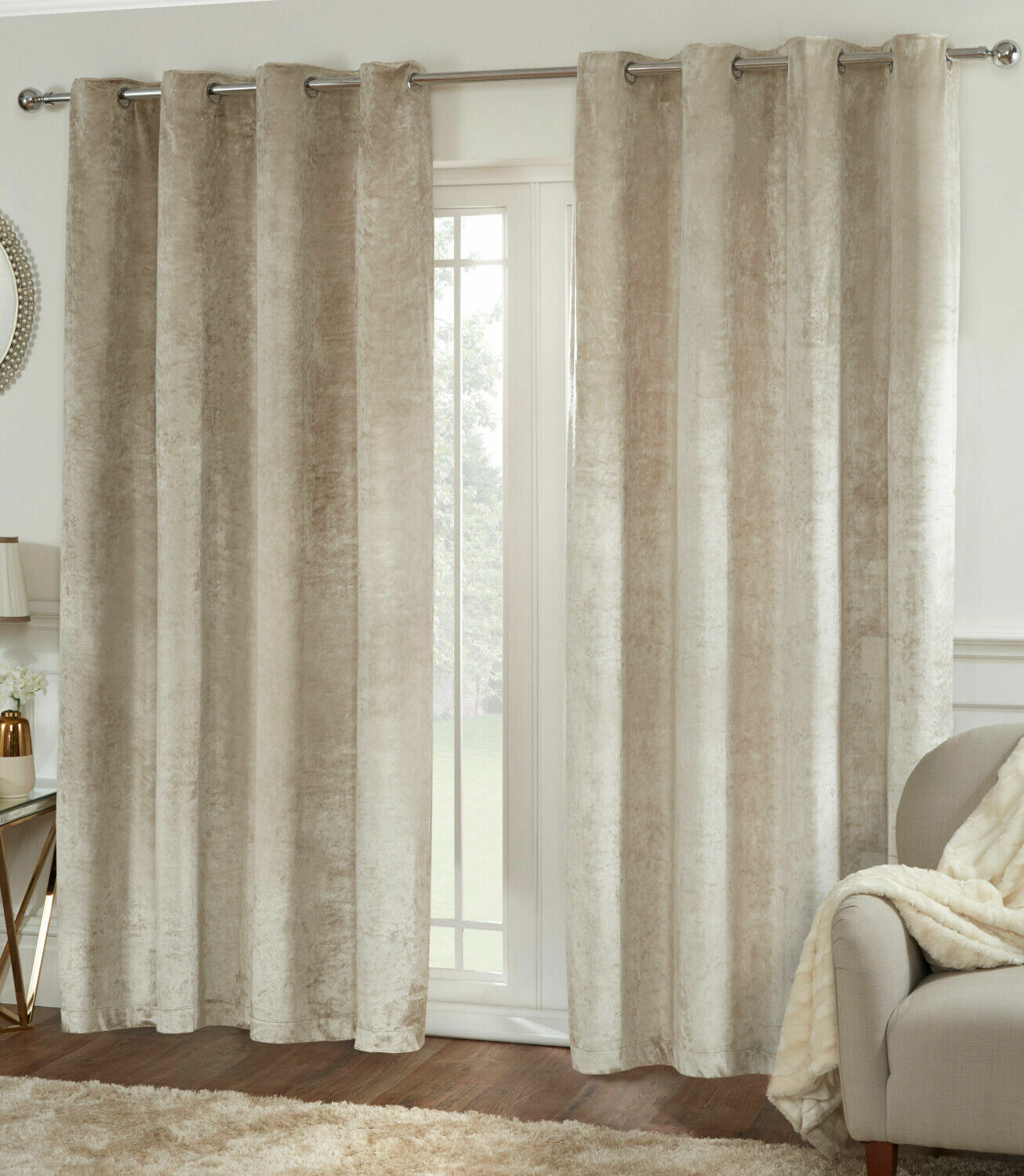 Catherine Lansfield Crushed Velvet 90x90 Inch Lined Eyelet Curtains Two Panels Natural