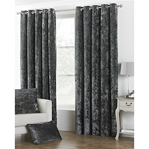 Riva Paoletti Verona Ringtop Eyelet Curtains (Pair) - Pewter Grey - Velvet Feel - Crushed Velvet Look 100% Polyester - 229cm width x 229cm drop (90" x 90" inches) - Designed in the UK