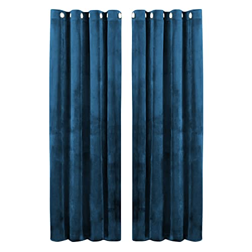 Imperial Rooms Crushed Velvet Curtains 90x90 Inch Navy Blackout Curtains for living room Super Soft Privacy Protection & Thermal Curtain 2 Panel with Matching Tiebacks