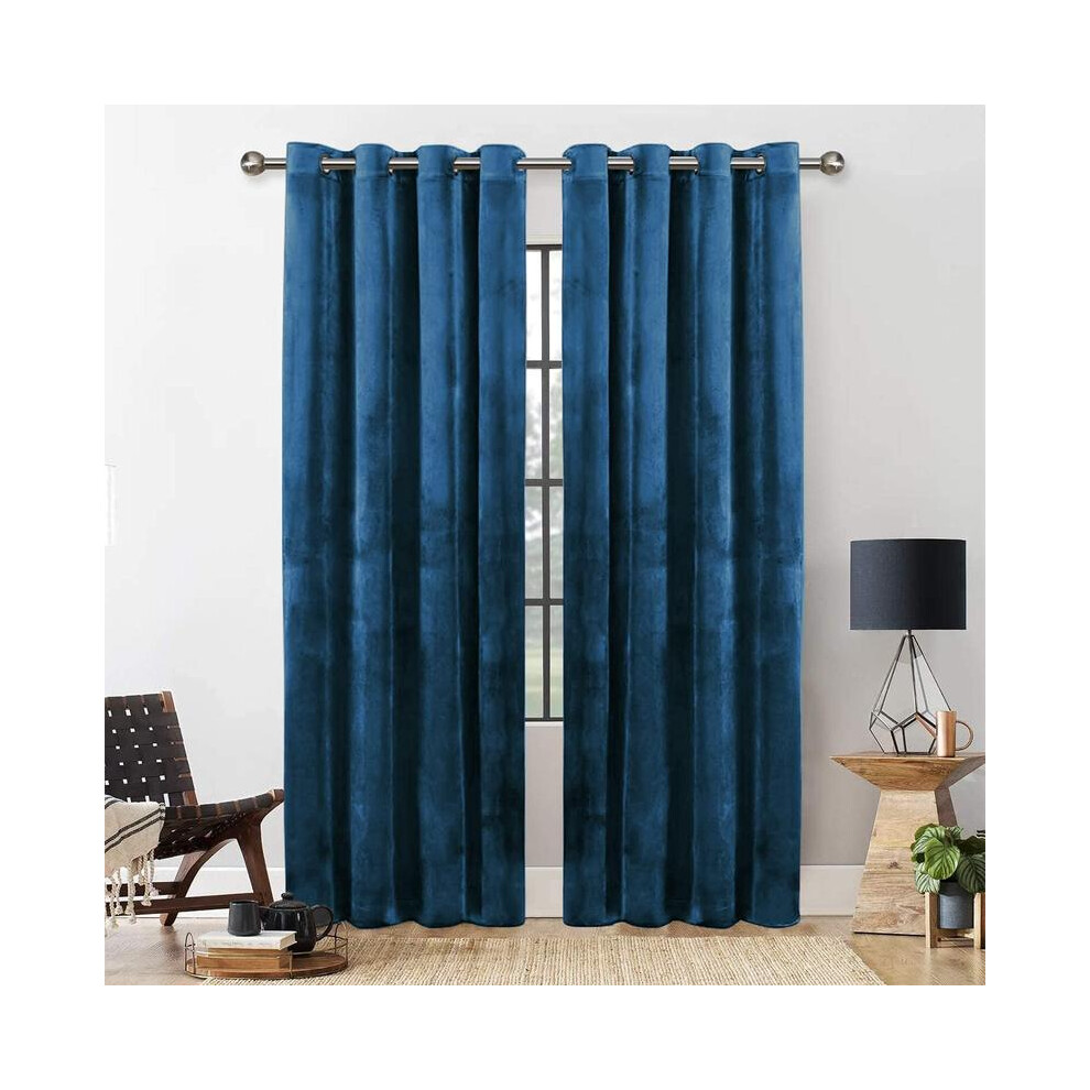 (Blue, 90"x90") Heavy Velvet Curtains Eyelet Ring