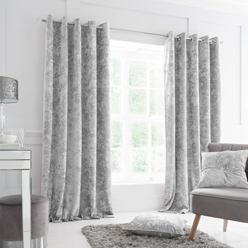 Riva Paoletti Verona Ringtop Eyelet Curtains (Pair) - Silver - Velvet Feel - Crushed Velvet Look 100% Polyester -229cm width x 229cm drop (90" x 90" inches) - Designed in the UK