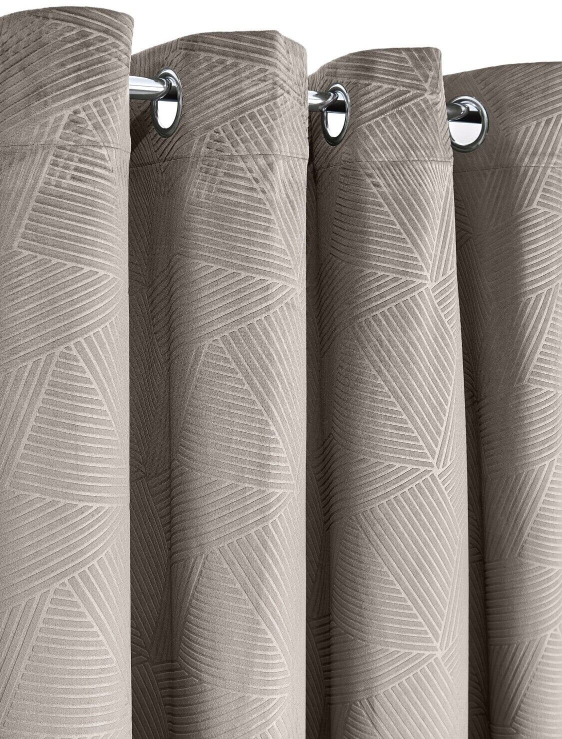 Boulevard Velvet Strip Eyelet Ring Top Curtains Fully Lined, Fabric, Mink, 90 x 90-Inch