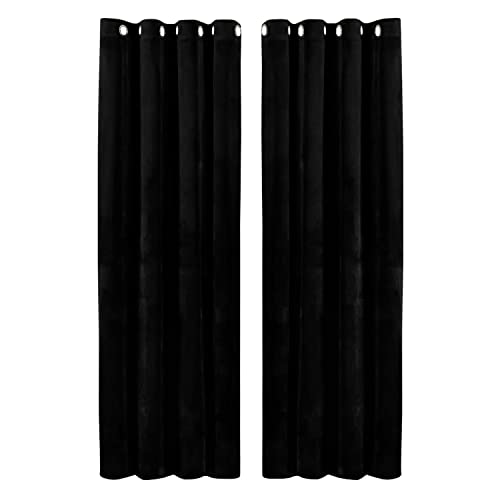 Imperial Rooms Crushed Velvet Curtains 90x90 Inch Black Blackout Curtains for living room Super Soft Privacy Protection & Thermal Curtain 2 Panel with Matching Tiebacks