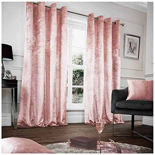 Catherine Lansfield Crushed Velvet 90x90 Inch Lined Eyelet Curtains Two Panels Blush Pink
