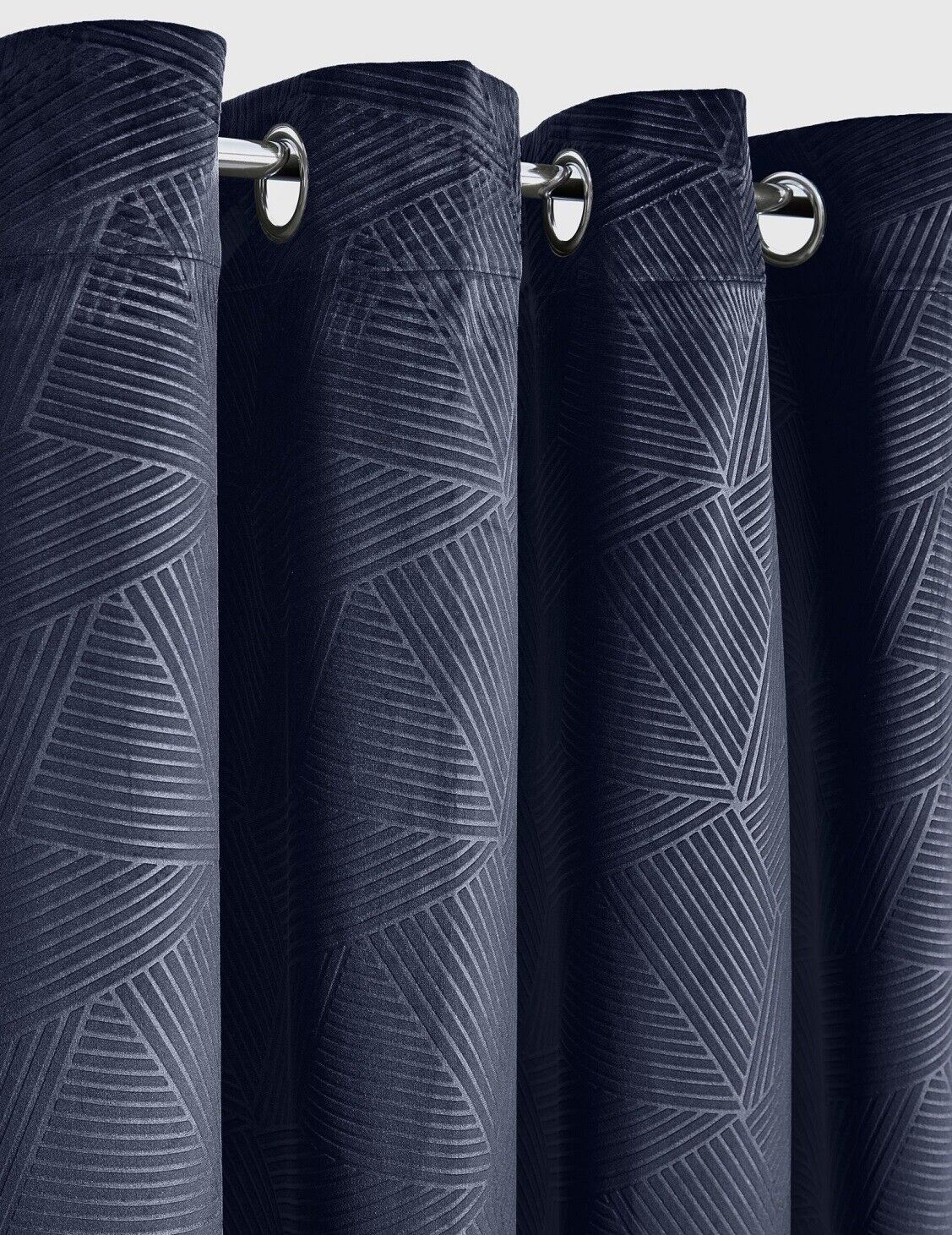 Velvet Thermal Blackout Curtains Geometric Eyelet Ring Top 228x228cm 90x90" Navy