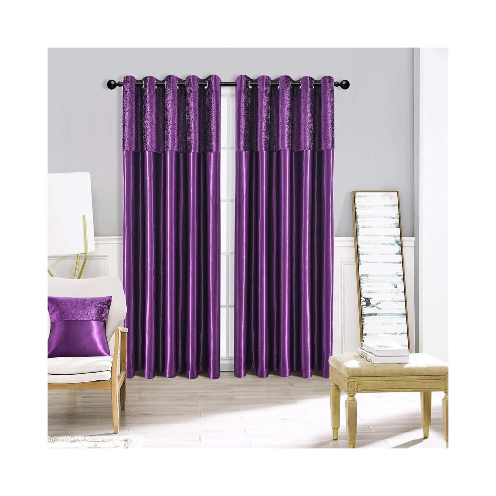 (PURPLE, 90X90) ROOEE Crushed Velvet Faux Silk Curtains - Luxury and Fully Lined Window Drapes with Eyelet Ring Top