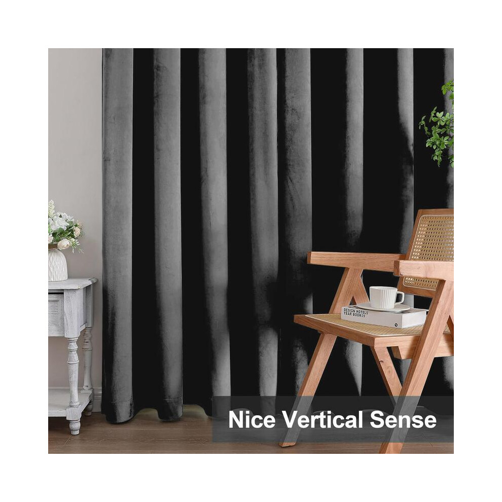 (Charcoal, 90"x90") Heavy Velvet Curtains Eyelet Ring