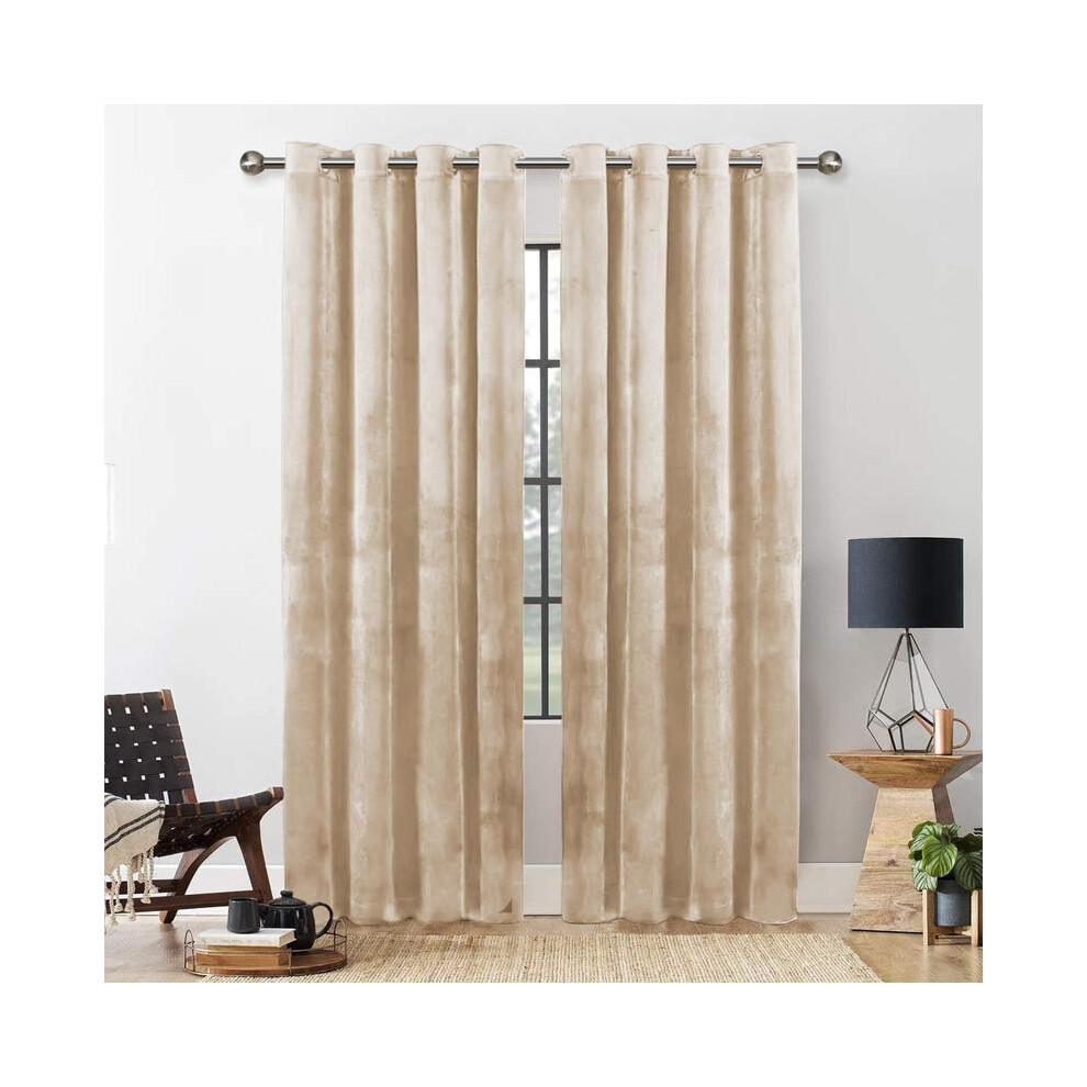 (Beige, 90"x90") Heavy Velvet Curtains Eyelet Ring