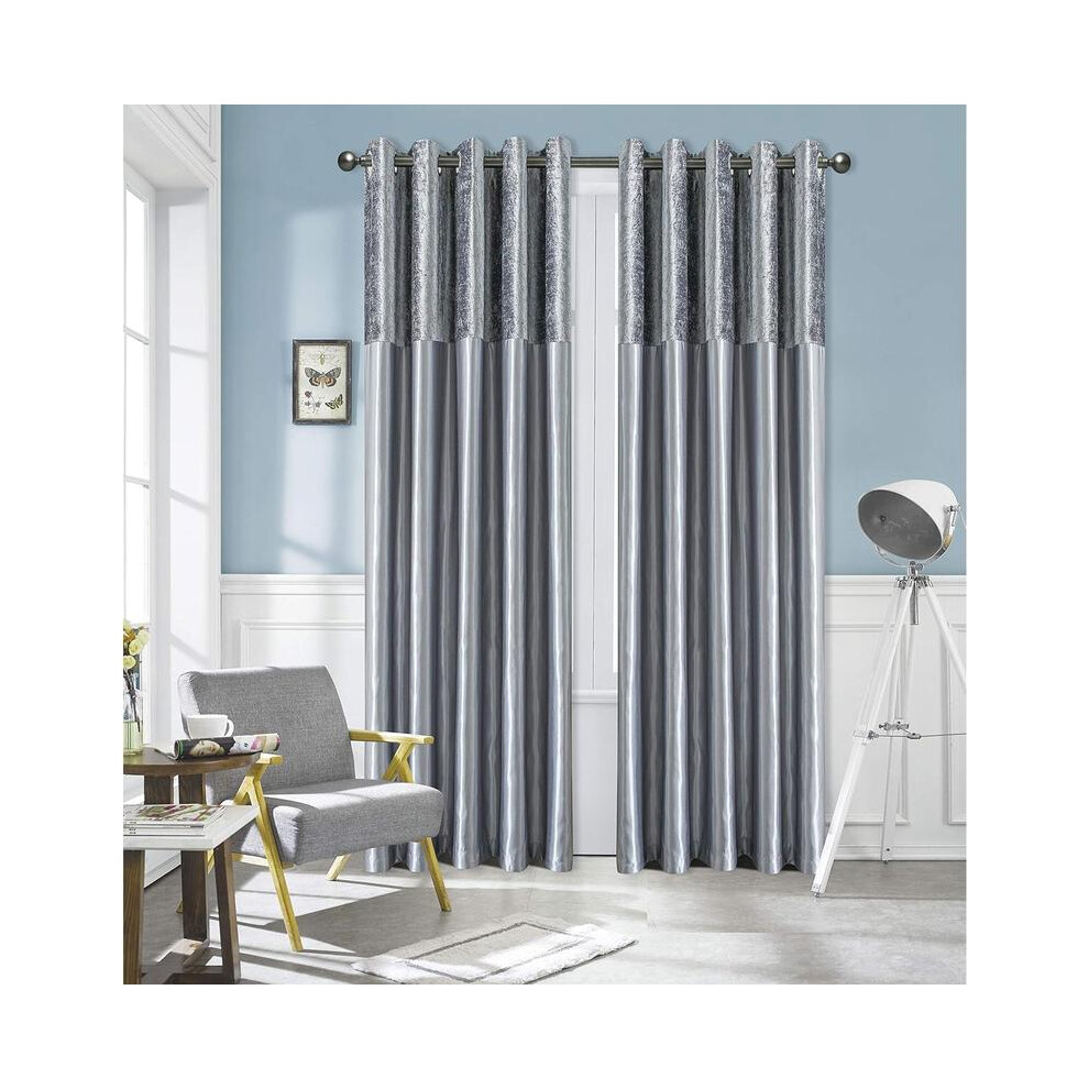(Silver, 90x90) New Crushed Velvet Curtains Pair Ready Made Fully Lined Eyelet Ring Top Pair