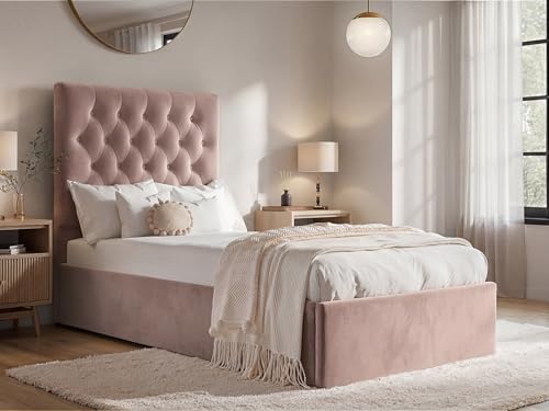 vidaXL Bed frame with mattress with headboard Pink 90x190cm Velvet