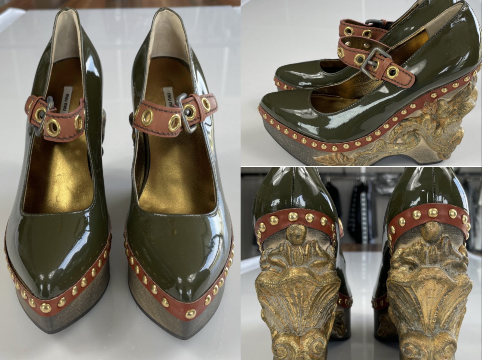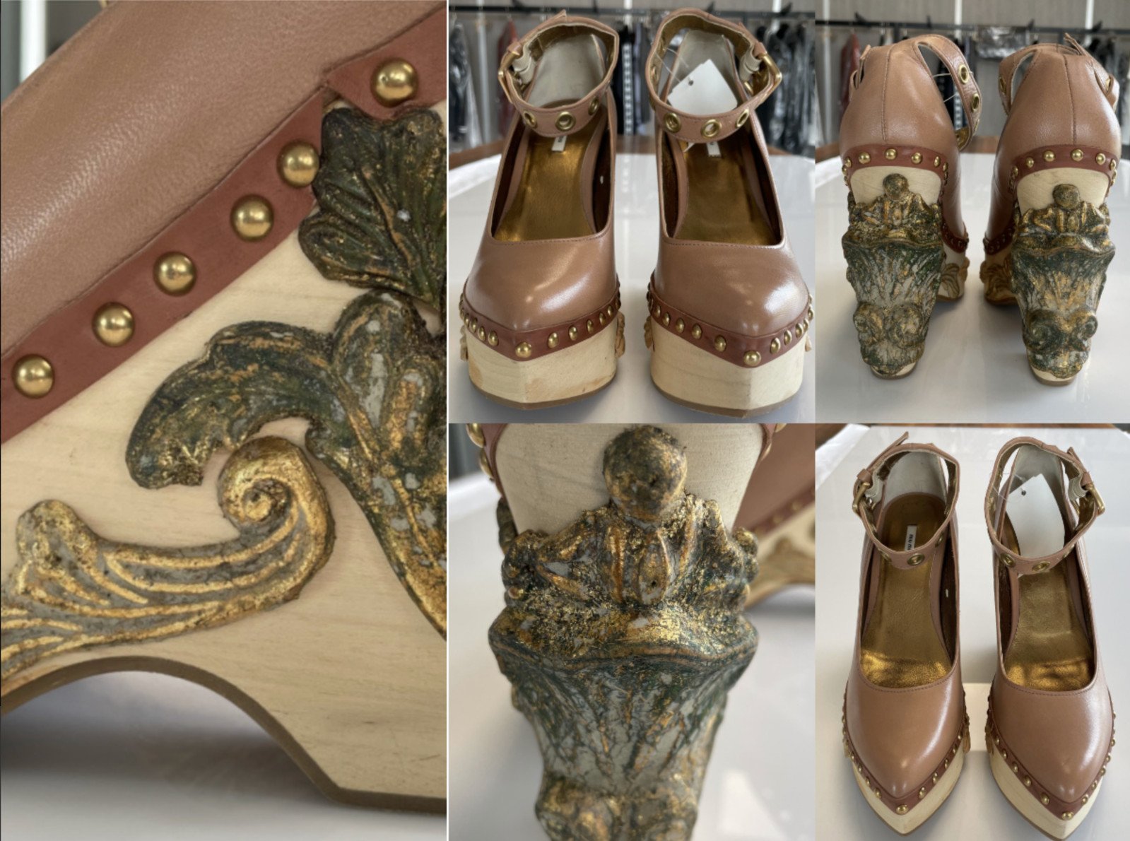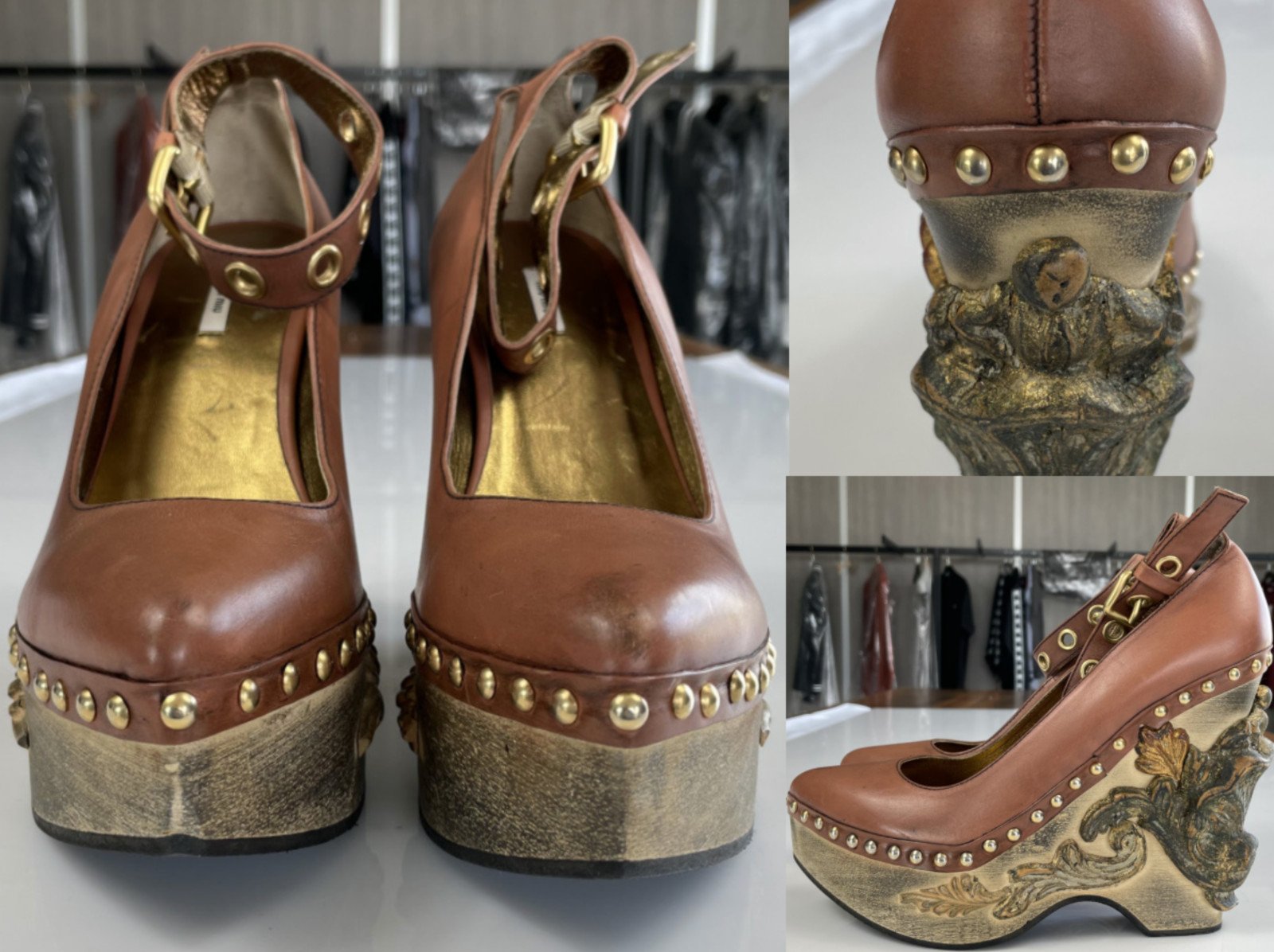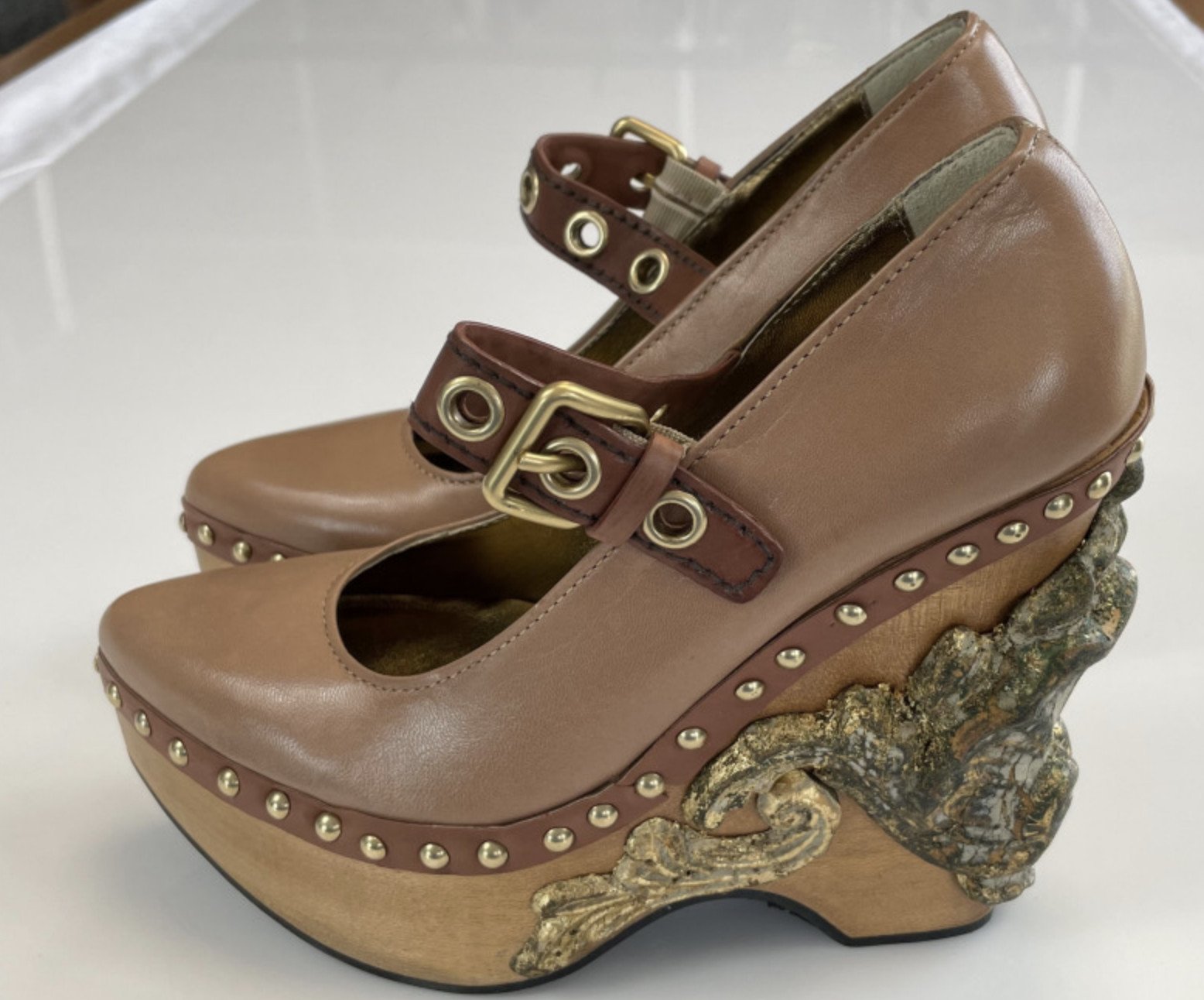 Miu Miu Deadstock Runway Venice Baroque Sculpted Platform Wedge Shoes 37