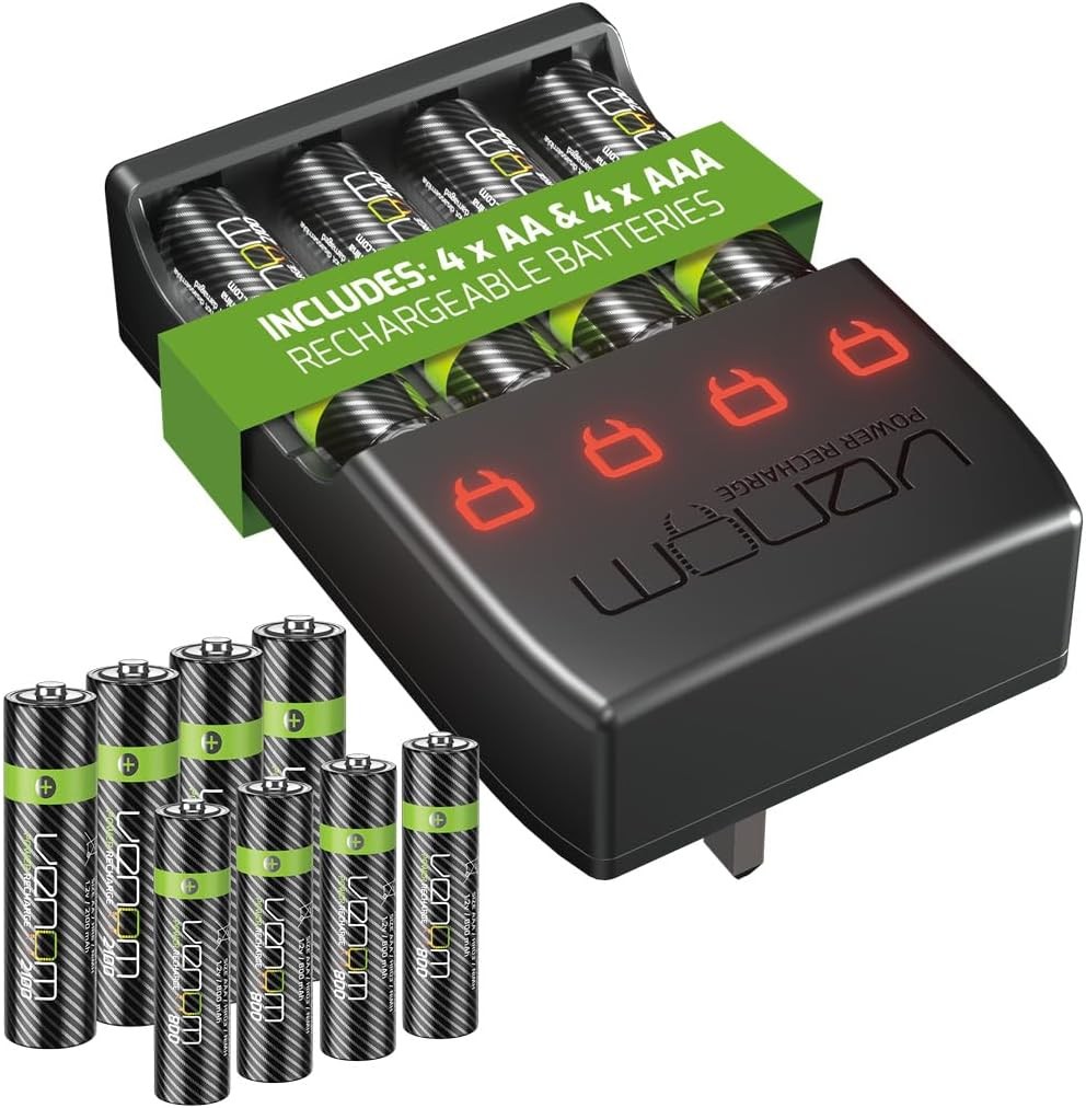 Venom Plug In Wall Charger, 4 x AA & 4 x AAA Rechargeable Batteries
