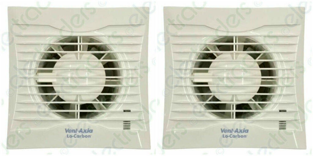 2 x Vent Axia 441625A Silhouette 100T Lo-Carbon Axial Extractor Fans with Timer