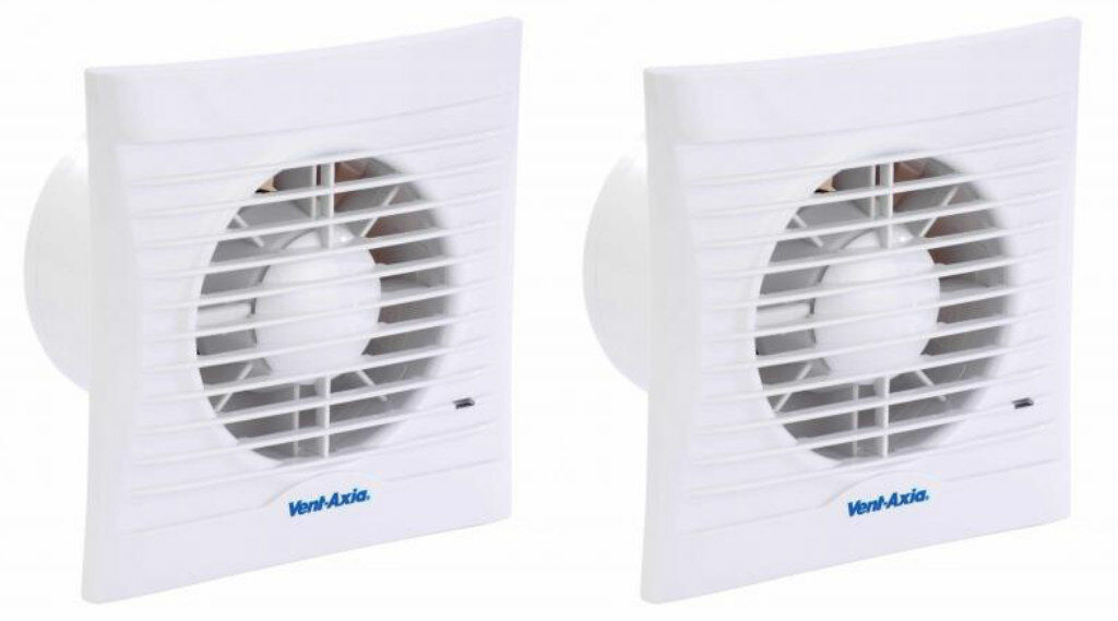 2 x Vent Axia 441626 100HT Lo-Carbon Silhouette Extract Fans Humidistat & Timer