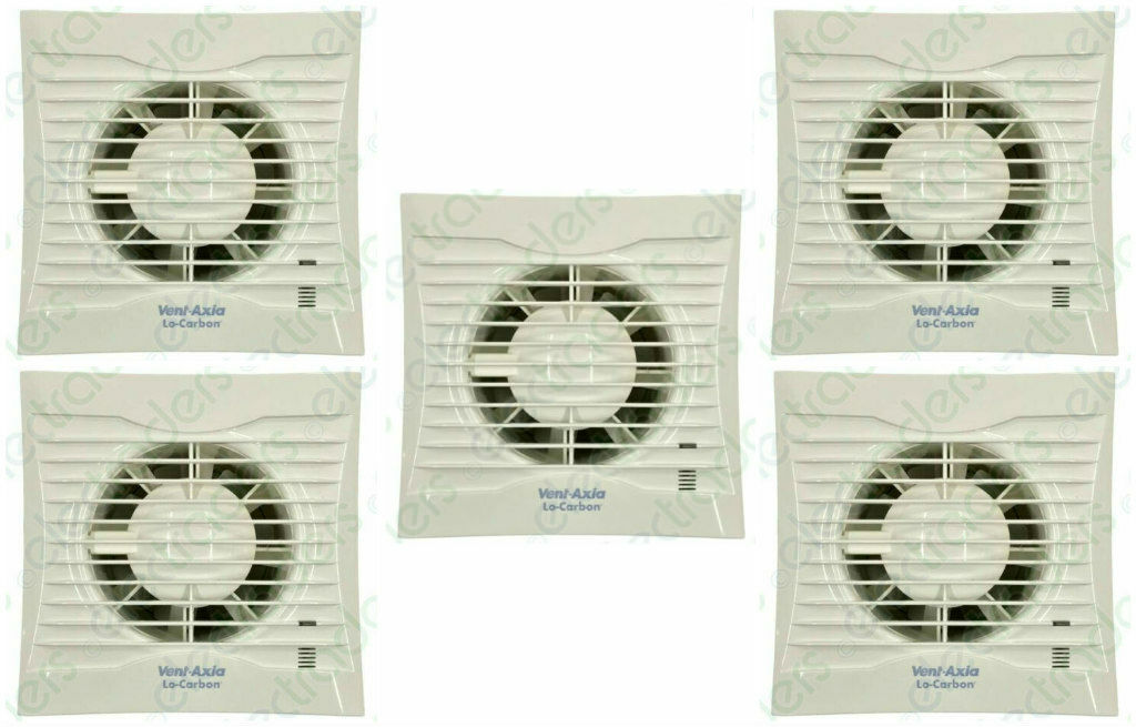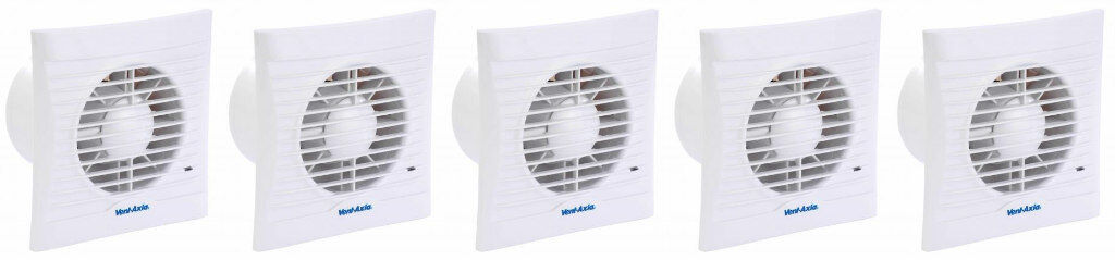 5 x Vent Axia 441625A Silhouette 100T Lo-Carbon Axial Extractor Fans with Timer