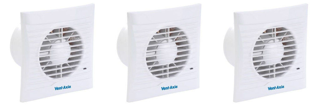 3 x Vent Axia 441624B Silhouette 100B Lo-Carbon Axial Extractor Fan 100 mm