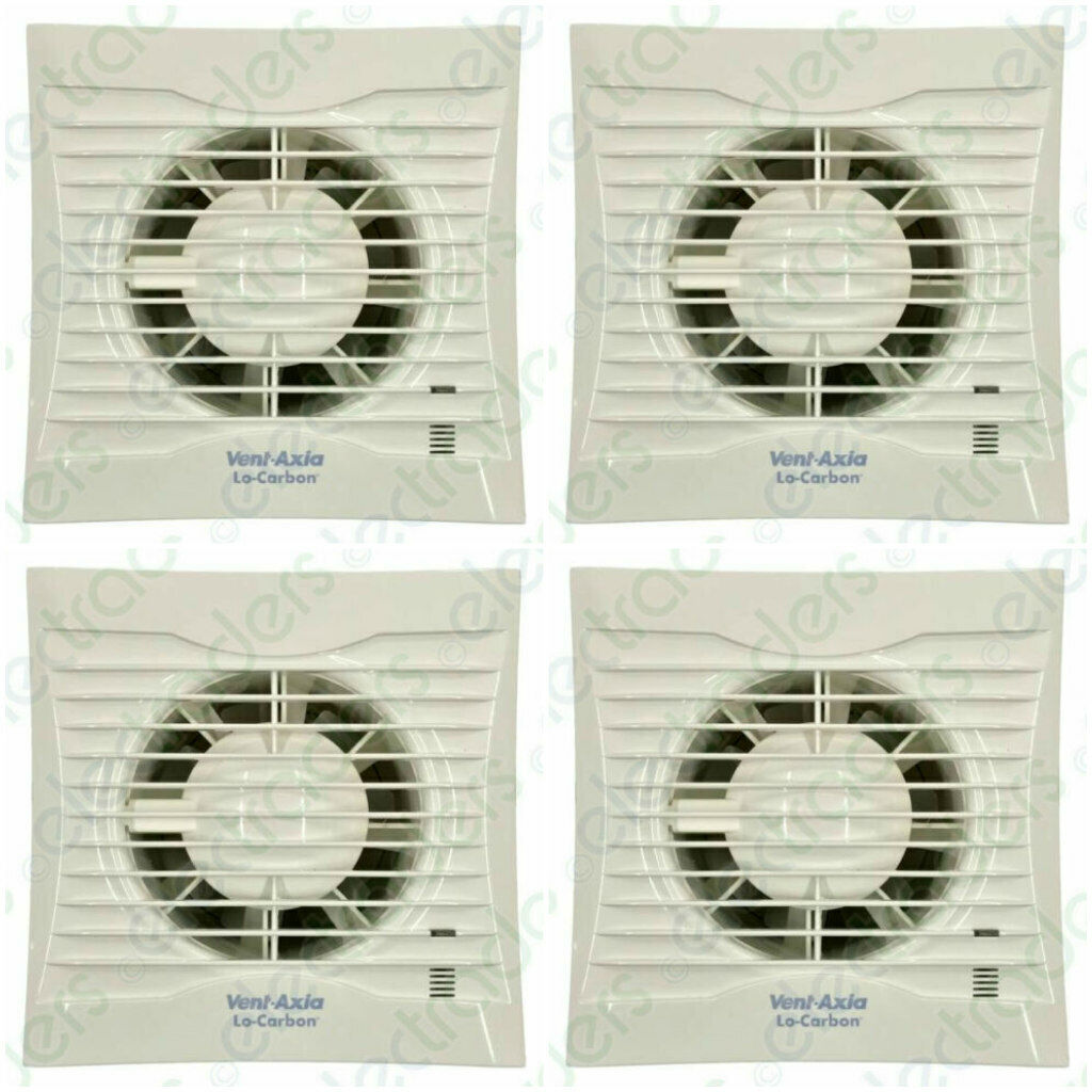 4 x Vent Axia 441625A Silhouette 100T Lo-Carbon Axial Extractor Fans with Timer