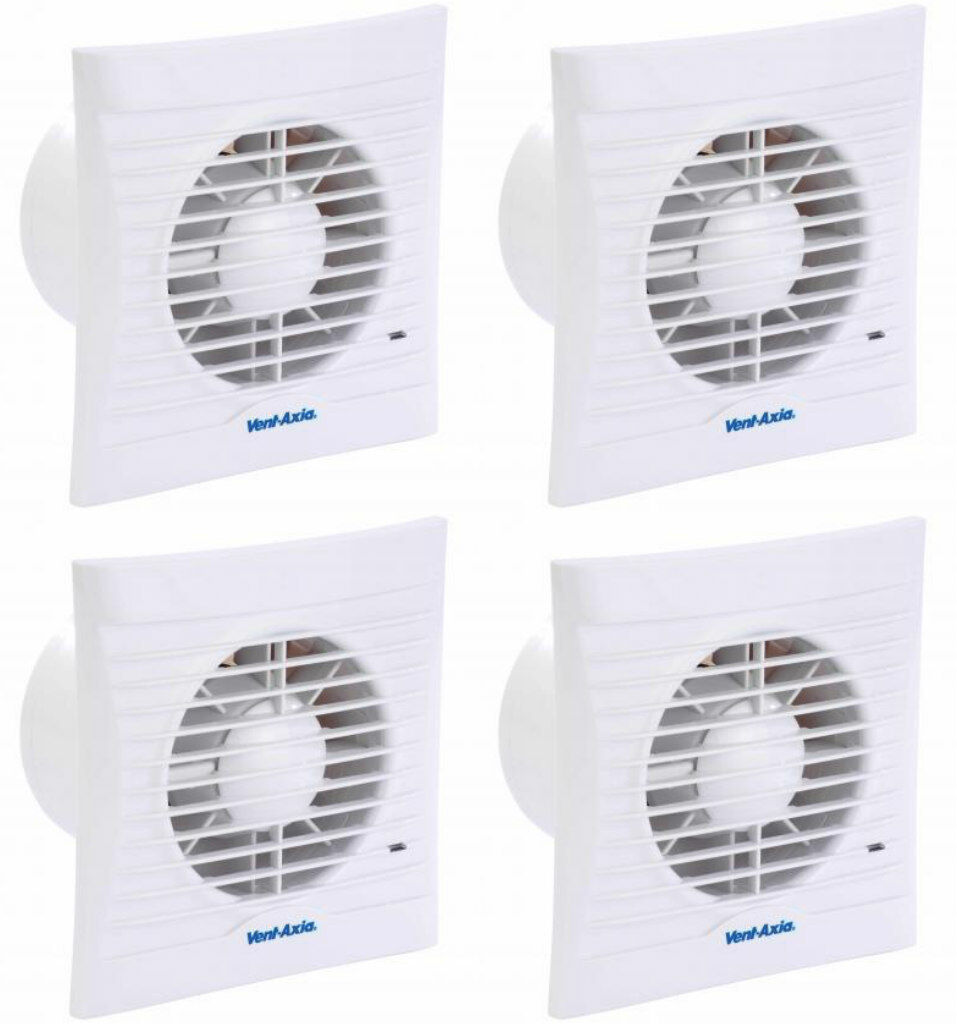 4 x Vent Axia 441624B Silhouette 100B Lo-Carbon Axial Extractor Fan 100 mm