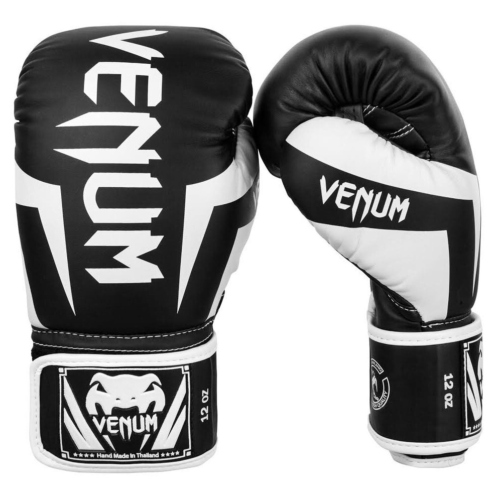 (12 oz) VENUM ELITE BOXING GLOVES - BLACK/WHITE