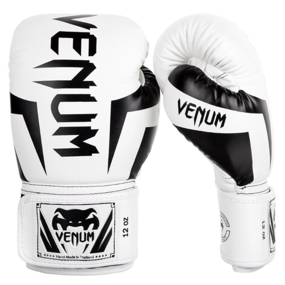 (12oz ) VENUM ELITE BOXING GLOVES - WHITE/BLACK