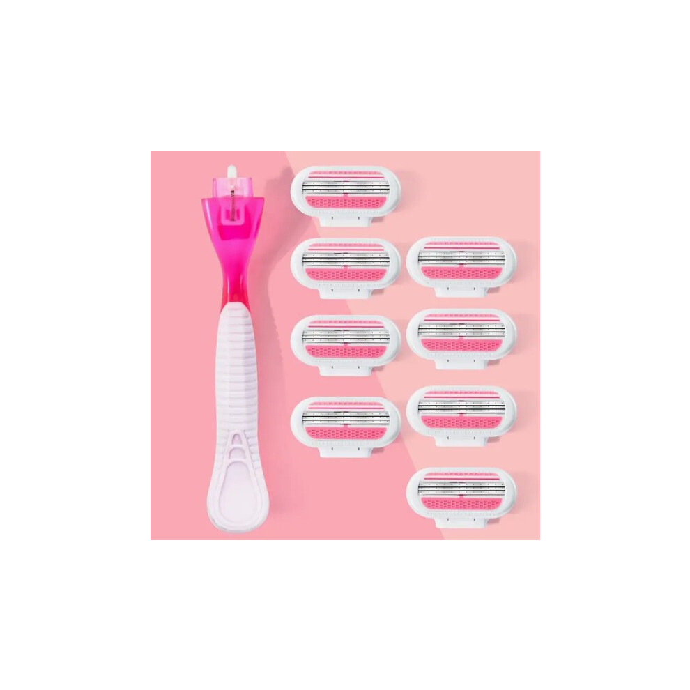 3-Blade Women's Razor w/8 Blades+1 Handle, Venus-Compatible Pink Hypoallergenic