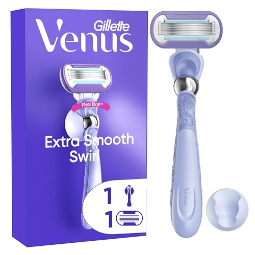 Gillette Venus Extra Smooth Swirl Women’s Razor, 1 Refill Razor Cartridges, Pivoting Reusable Handle and Shower Holder