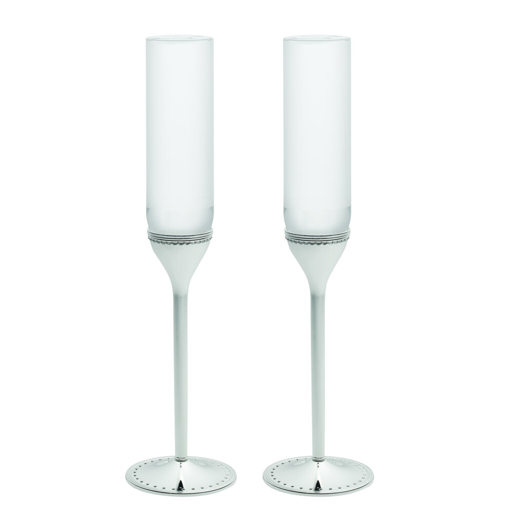 Vera Wang Wedgwood Grosgrain Silver Plate Toasting Flute Pair