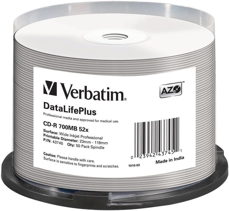 Verbatim CD-R 700MB 52x 50-pack Cakebox Wide Thermal Printable