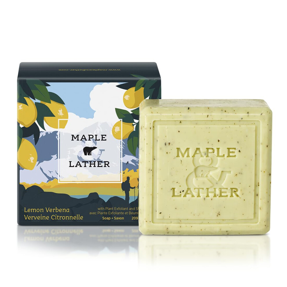 Maple & Lather Triple Milled Bar Soap with Shea Butter Lemon Verbena Scent Long-Lasting Exfoliating Moisturing Sustainably Sourced 209g - Made i