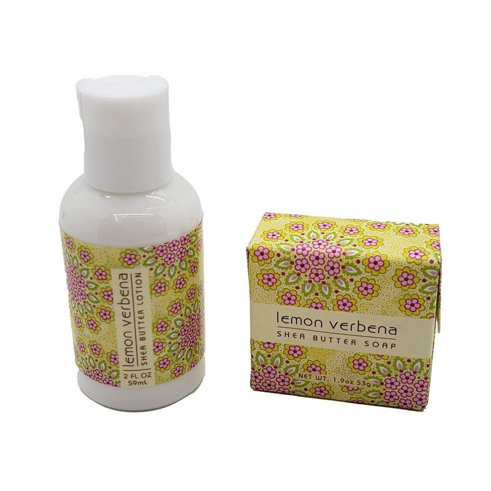 Greenwich Bay Trading Company Botanical Collection Bundle: Lemon Verbena - 2oz Mini Wrapped Soap Block + 2oz Mini Shea Butter Lotion Pack of 2