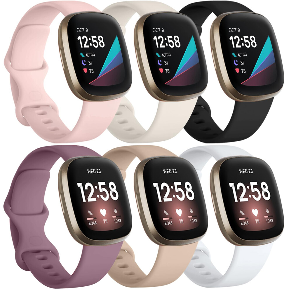 Charlam 6 Pack Straps Compatible with Fitbit Versa 3/ Versa 4 Straps/Fitbit Sense/Sense 2 Strap, Soft Sport Watch Strap Replacement Wristbands for Women Men, Small