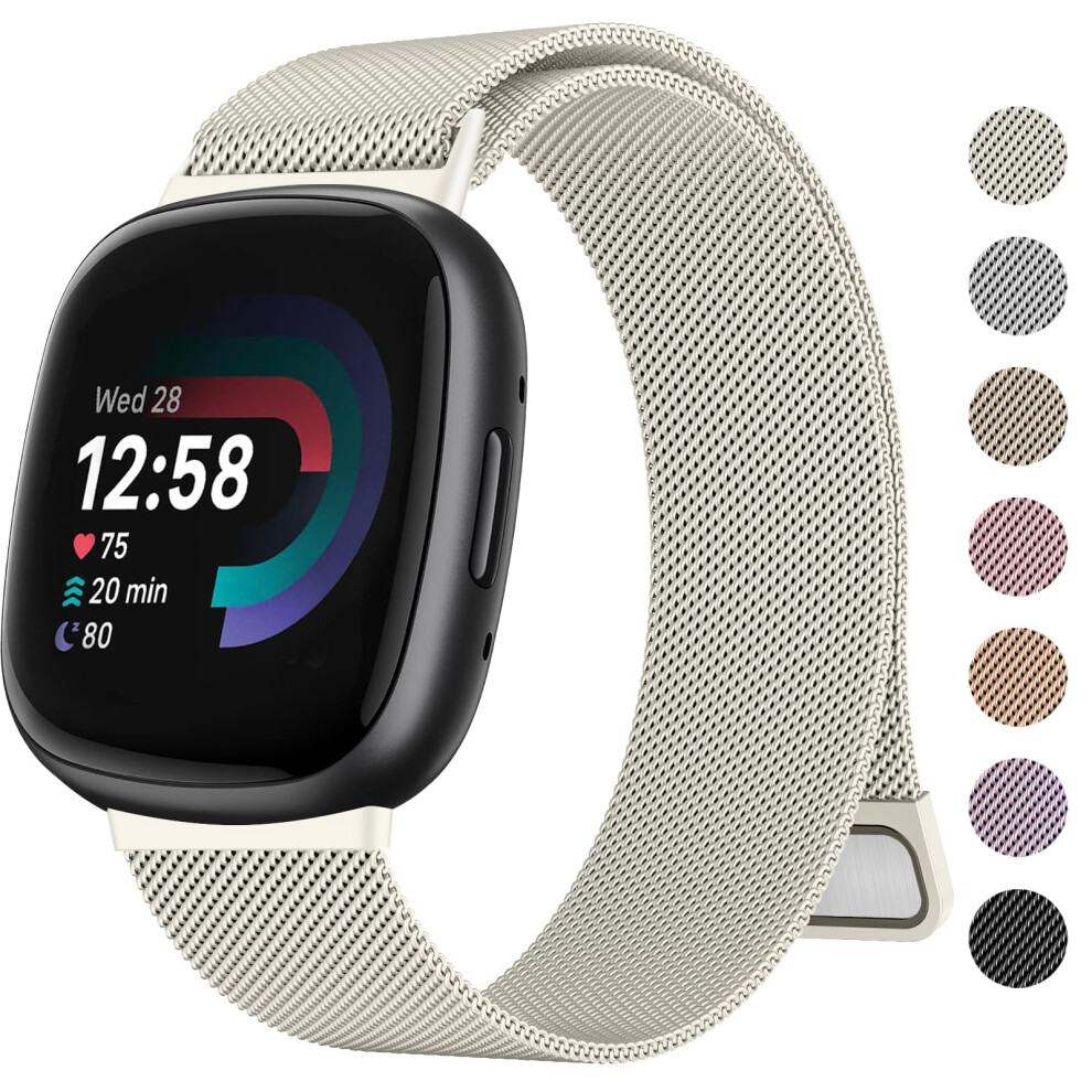 Tobfit Metal Strap for Fitbit Sense/Sense 2/Fitbit Versa 4/Versa 3 Straps for Women Men, Stainless Steel Mesh Loop Adjustable Wristband Replacement Strap (Starlight, Small for 140mm - 215mm wrists)