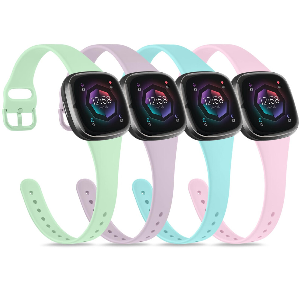 [4 PACK] Slim Straps for Fitbit Versa 3 / Versa 4 Straps/Fitbit Sense/Sense 2 Strap for Women Men, Soft Slim Thin Silicone Replacement Strap Wristband