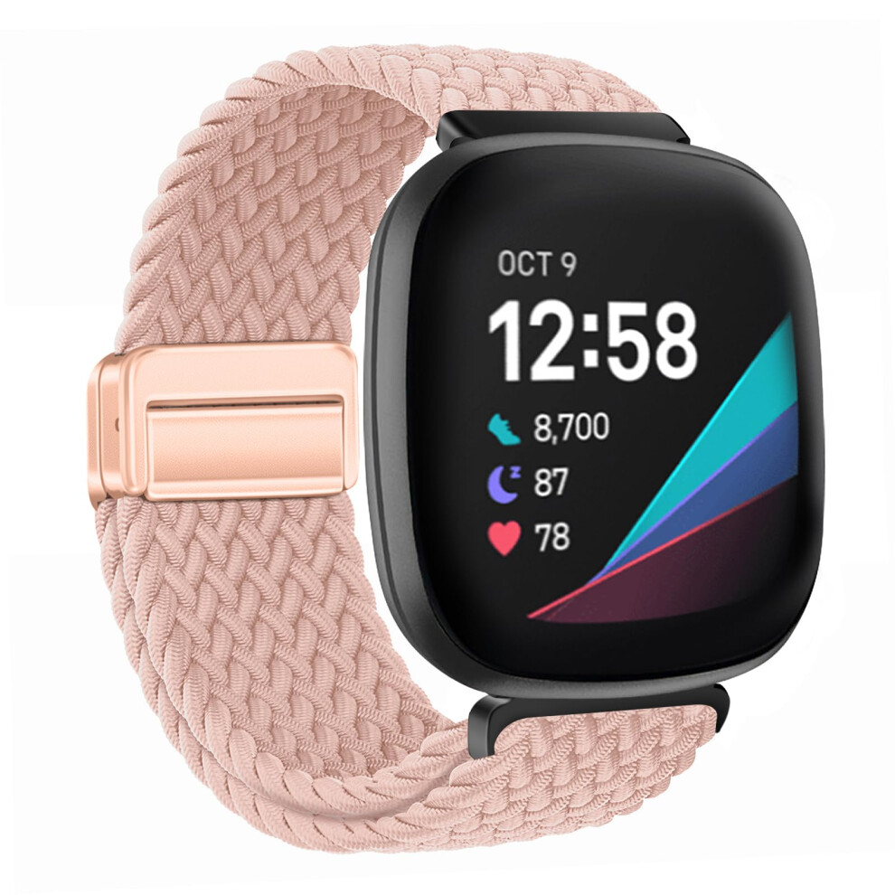 XMUXI Nylon Watch Band Compatible with Fitbit Versa 4/Versa 3 Straps/Sense 2/Sense Strap for Women Men, Stretchy Magnet Braided Replacement Wristbands