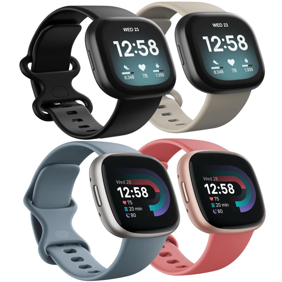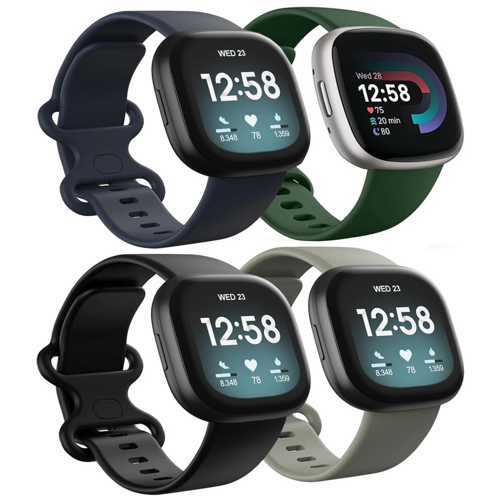 Newremote 4 Pack Waterproof Straps fit for Fitbit Versa 4 / Versa 3 / Sense 2 / Sense Straps, Classic Soft Sports Replacement Strap for Women Men