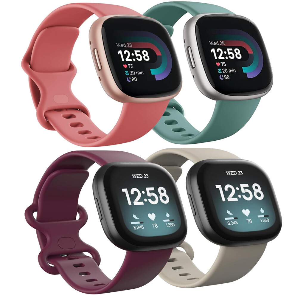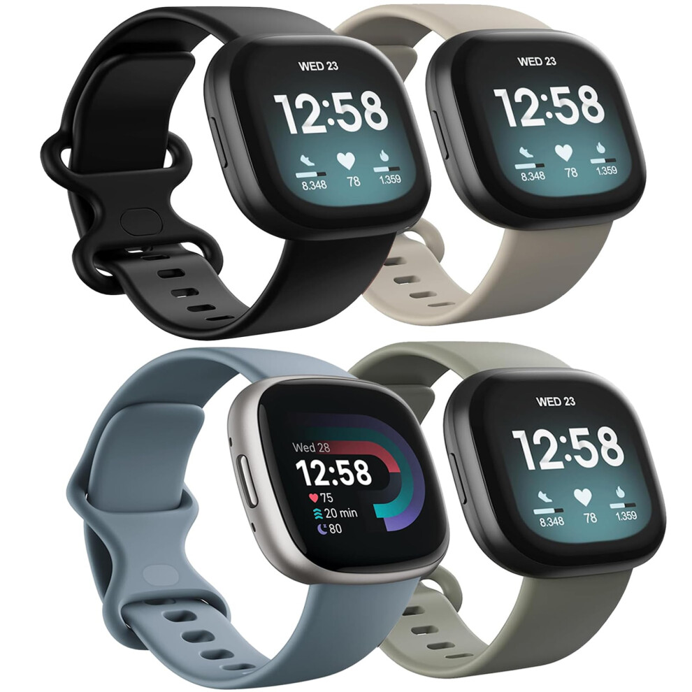 Replacement Straps 4Pcs for Fitbit Versa3/4/Sense/Sense2 for Women Men Ladies Waterproof Soft Breathable Elastic Silicone Classic Sport Adjustable Watchband Stretchy Smart Watch Wrist Bands for Gifts
