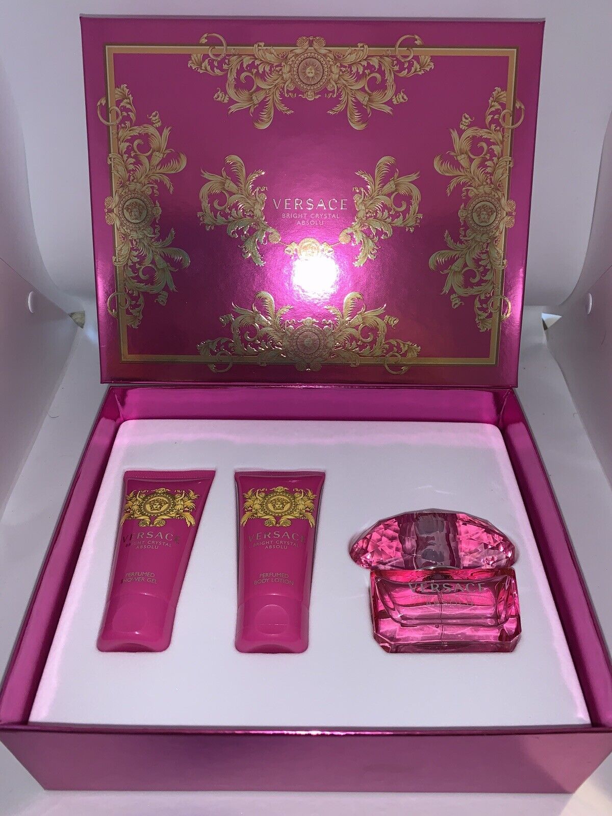 Versace Bright Crystal Absolu Gift Set 90ml EDP + 100ml Body Lotion + 100ml Shower Gel + Pouch