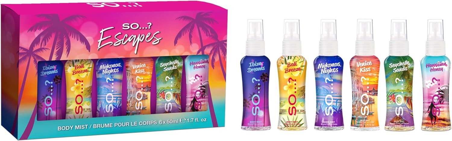 So...? Summer Escapes Mini Body Mist for Women, Fragrance Gift Set (6 x 50ml) â