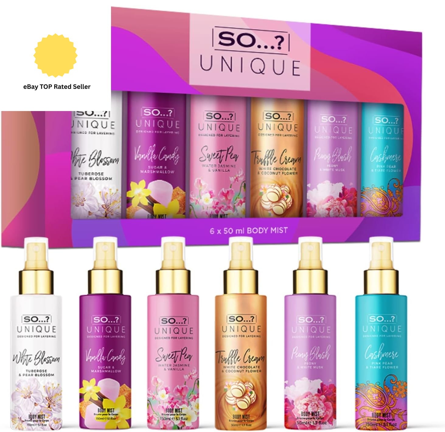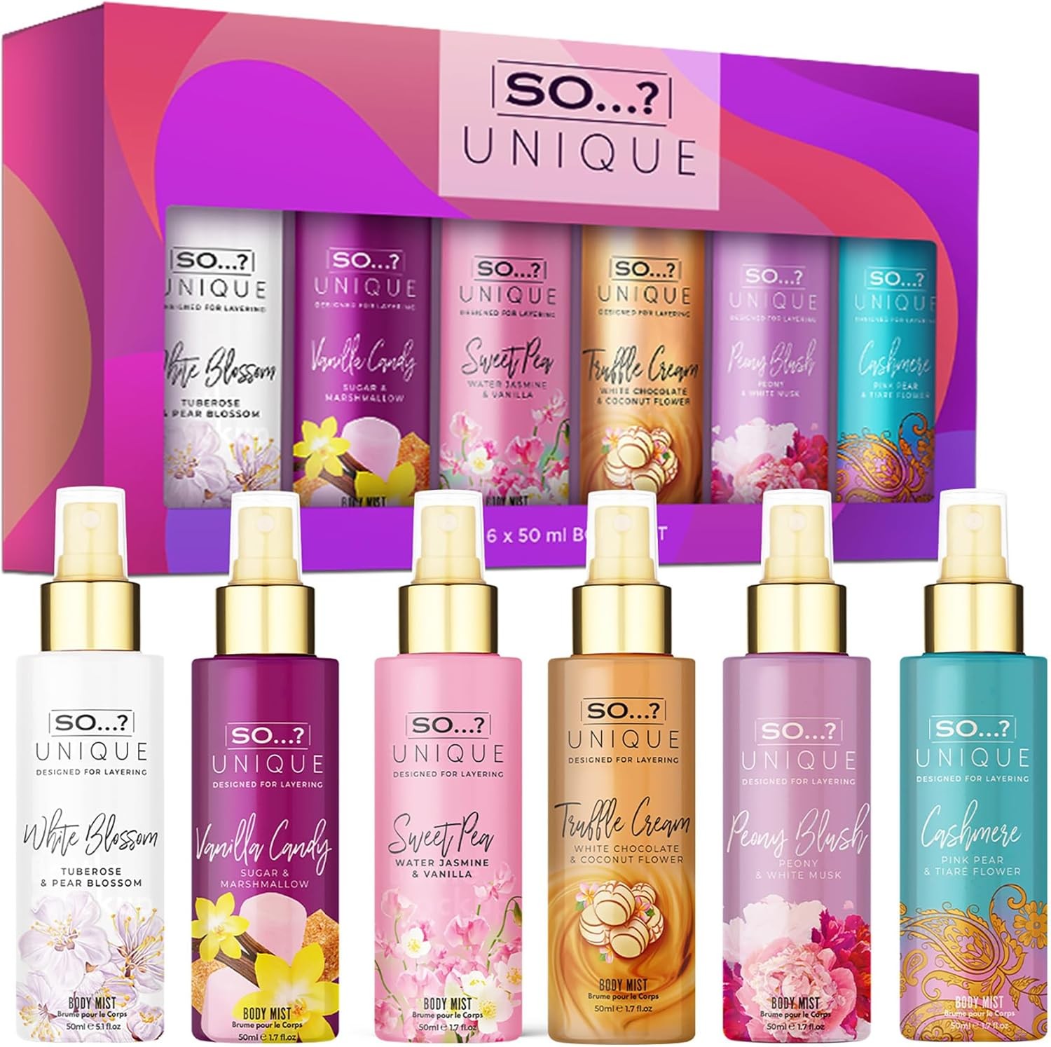So…? Unique Grande Womens Mini Mist Gift Set, Body Mist Fragrance Spray 6x50ml