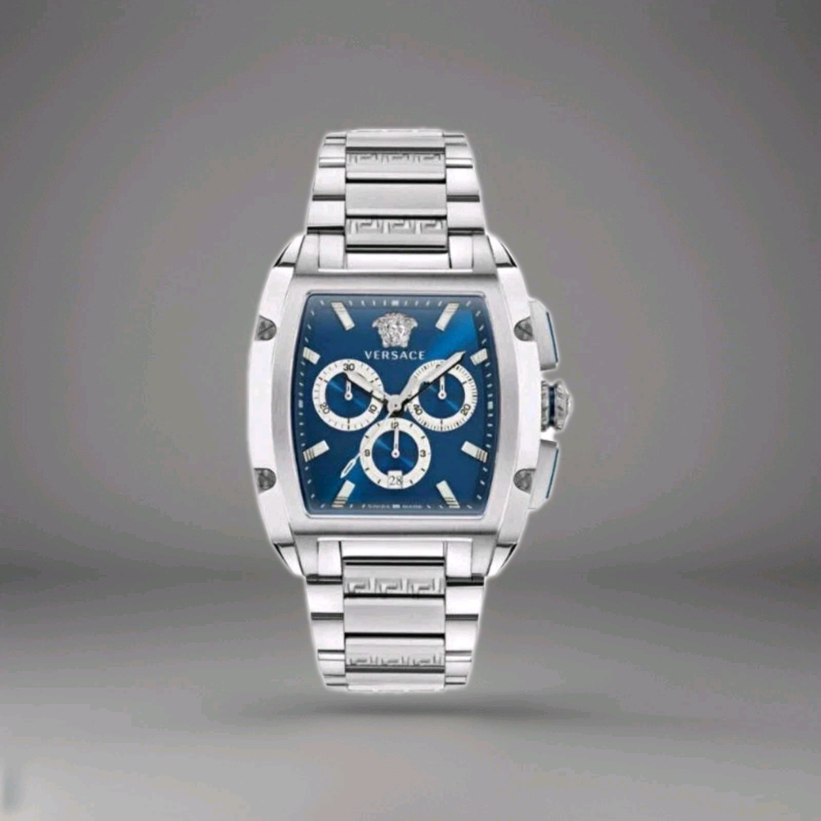 Versace Dominus Quartz Watch, Silver, Blue, Sapphire Crystal, VE6H00423 chrono.
