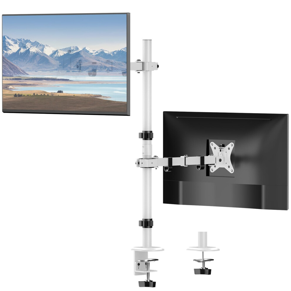 Suptek VESA Monitor Stand, Single Monitor Desk Mount for 13"-27" Screens up to 10kg, Adjustable Single Vertical Screen Stand with Tilt Swivel Rotation, VESA 75x75mm/100x100mm