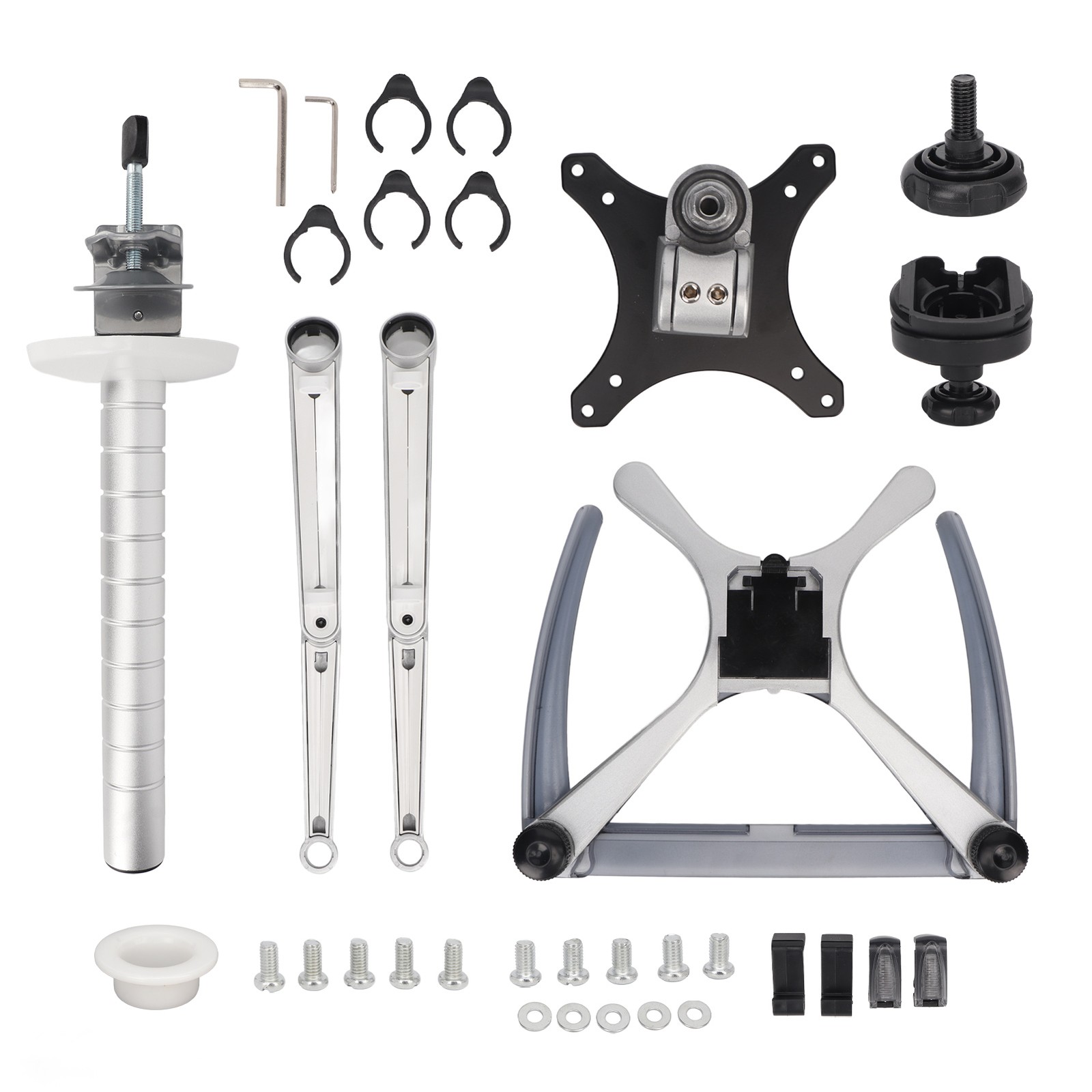Silver Vertical Stacking Dual Monitor Arm Damping Adjustment Aluminium Alloy WL